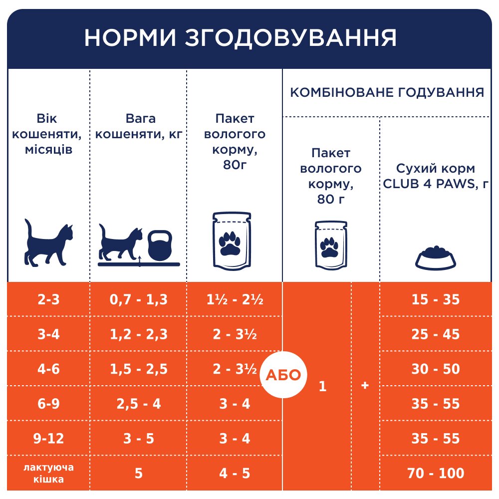 Подавайте корм кімнатної температури. Добову норму підбирайте відповідно до віку, ваги та активності кошеняти. Забезпечте постійний доступ до свіжої питної води.