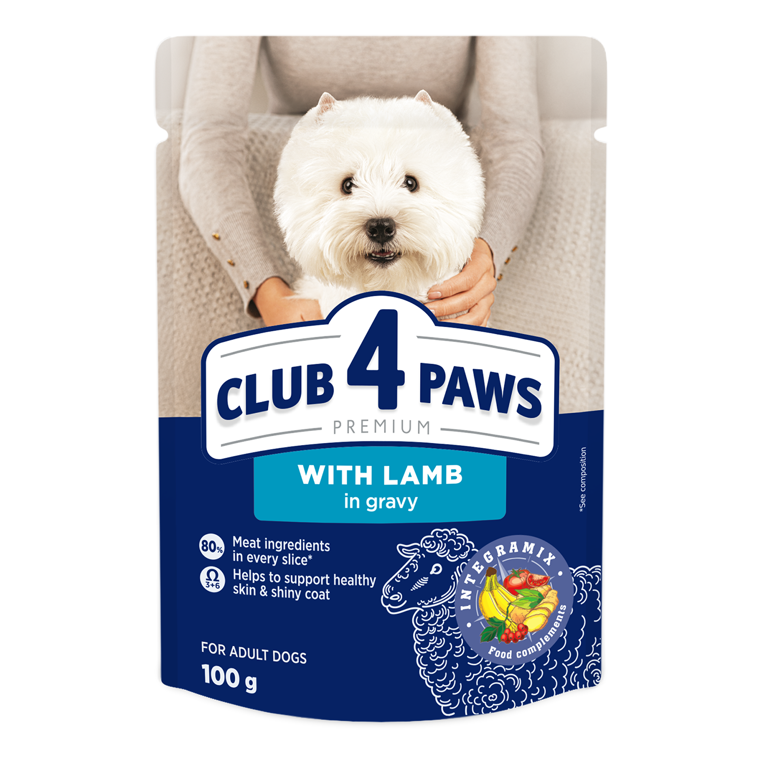 C4Р Premium пауч з ягням у соусі для собак малих порід — смачний і поживний вологий корм преміум-класу, спеціально розроблений для малих порід собак. Містить високоякісний білок ягняти, легко засвоюється та підтримує м’язову масу і енергію. Збагачений вітамінами та мінералами для здоров’я шкіри, шерсті та загального самопочуття собаки. Ідеально підходить для щоденного годування малих порід.