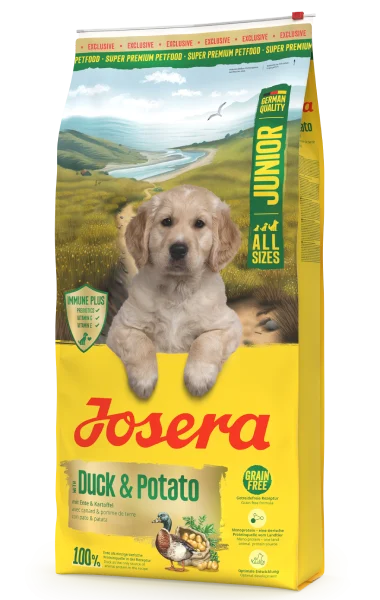 JOSERA Adult Duck & Potato наш абсолютний фаворит доступний і для цуценят: Josera Junior Duck & Potato – корм для вирощування з 100% качки та смачною картоплею. Помірний вміст енергії та збалансоване співвідношення кальцію і фосфору підтримують кісткову систему молодого собаки, сприяючи оптимальному розвитку.