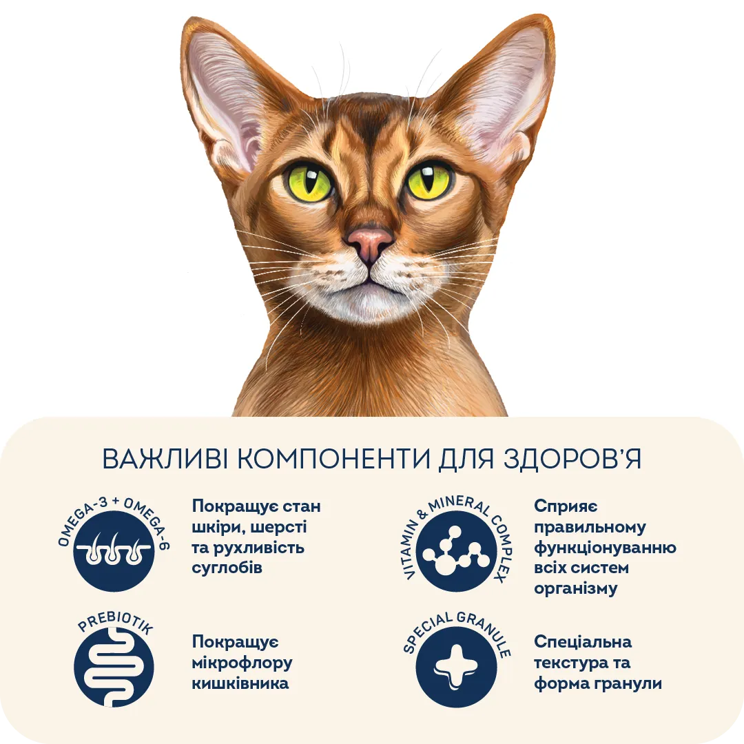 Ідеально підходить для котів, які мають чутливе травлення, схильні до харчової алергії, а також екзотичним породам котів. Завдяки вмісту необхідних амінокислот корм можна обирати для кастрованих котів та стерилізованих кішок.
