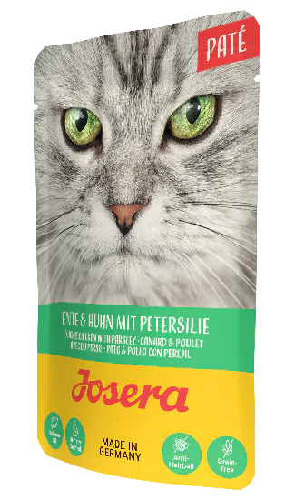 Josera Paté додає різноманіття до раціону Твого улюбленця. Ці збалансовані паштети містять м’ясні складові вищої якості, а також всі необхідні поживні речовини для повноінного здорогвого харчування Твого котика. Отже, наш Josera Paté – це повноцінний корм, який забезпечує всебічний догляд за Твоїм котом на кожен день.