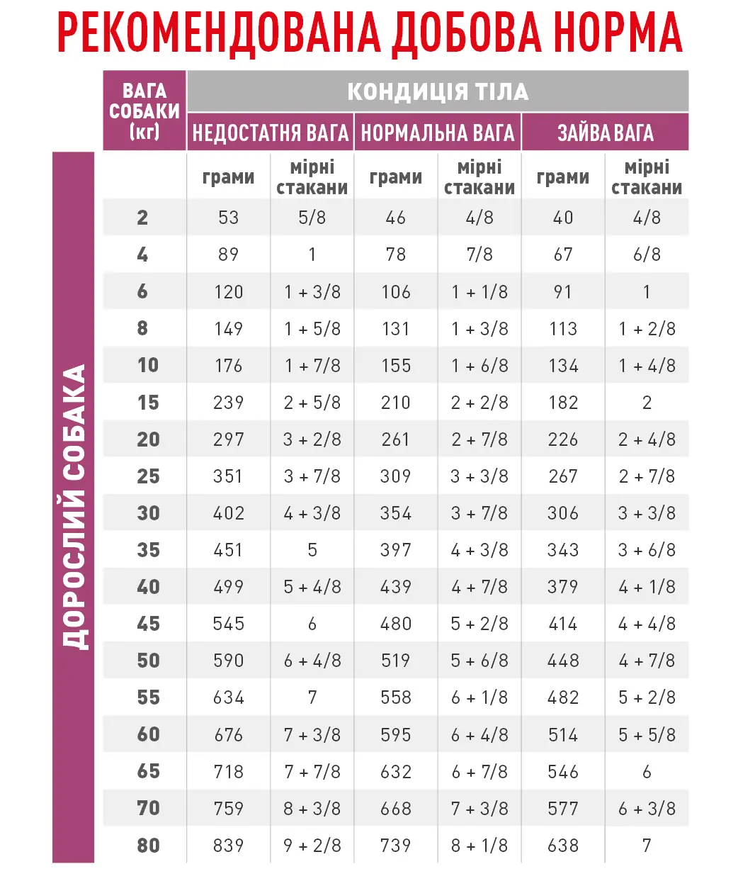 Адаптований вміст енергії для зменшення порції корму та компенсації зниження апетиту.