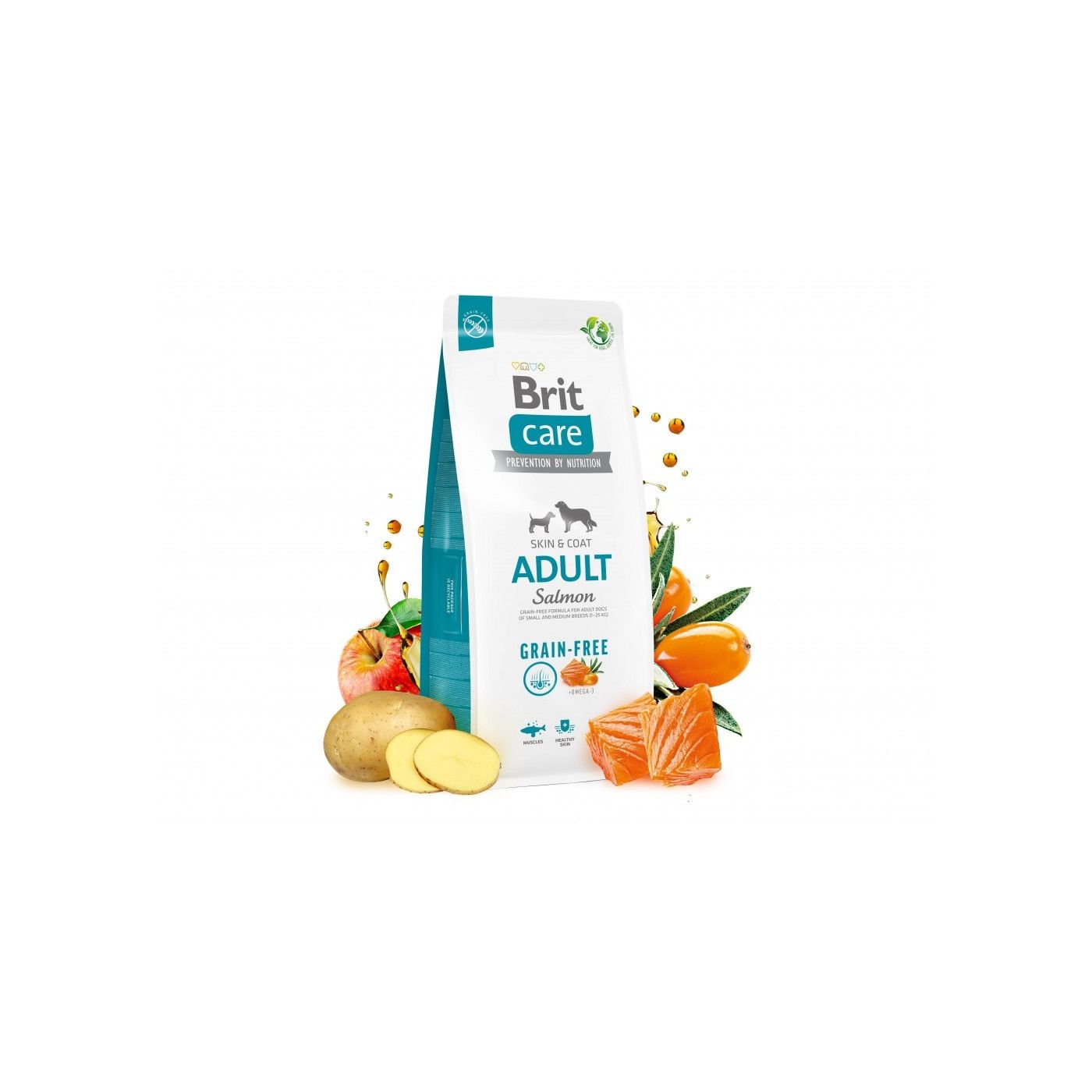 Беззерновий корм суперпреміум класу для підтримки здоров’я шкіри та шерсті, кровоносної системи і роботи серця, відмінного фізичного стану та імунітету дорослих собак малих і середніх порід (1 – 25 кг). Містить високопоживні білки і жирні кислоти для здоров’я шкіри та шерсті.