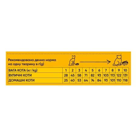 | Вуличні коти (г) | 28 | 45 | 58 | 71 | 82 | 93 | 103 | 113 | 122 | 131 |