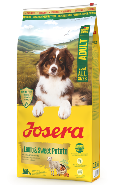 JOSERA A/S Adult Lamb & Sweet Potato Справжня насолода ягнятиною для активних любителів природи: ця без зернова рецептура з солодкою картоплею, яка підходить також для чутливих собак, обов’язково сподобається Вашому чотирилапому другу.