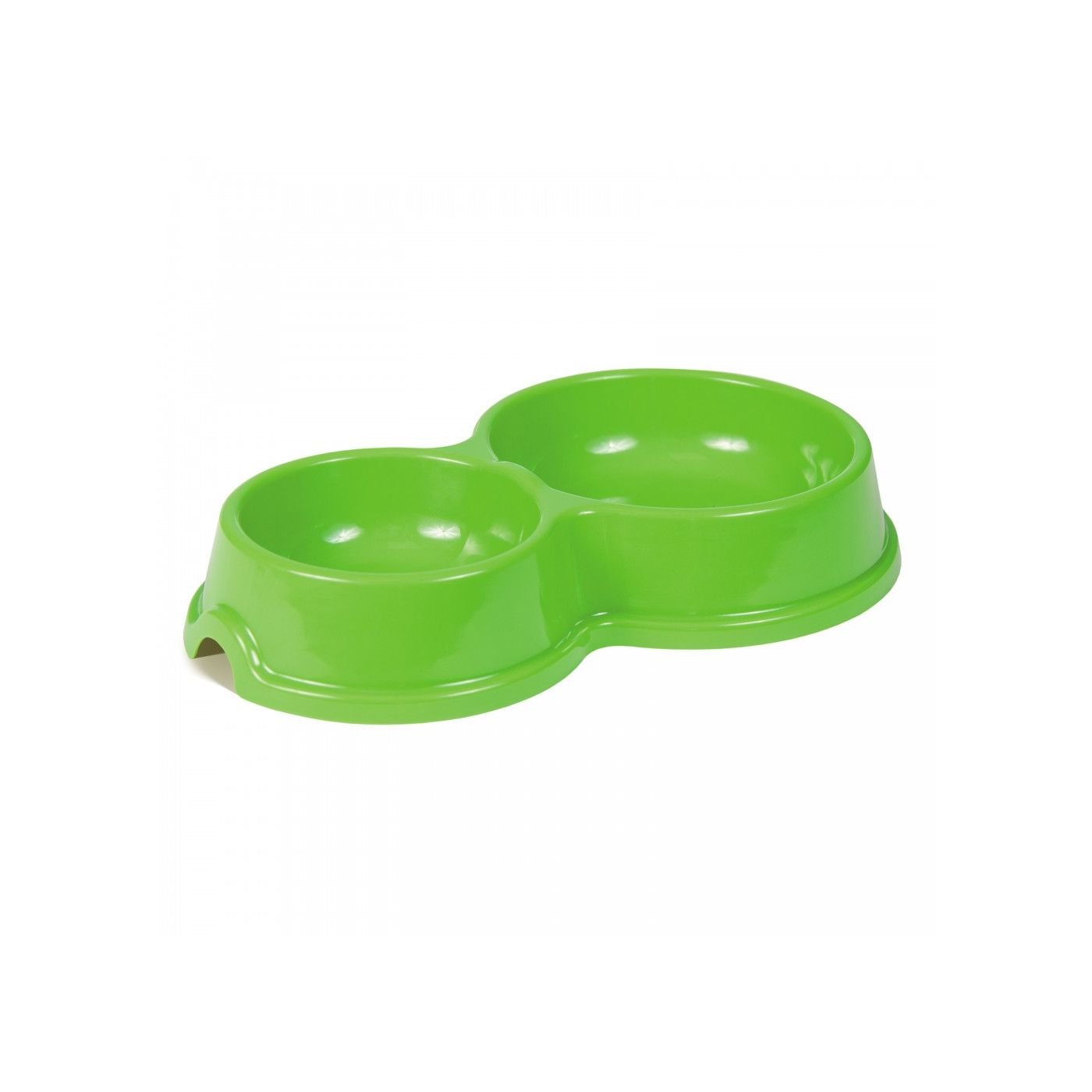 Подвійна миска дозволить вашому муркотику пити і їсти, не переходячи з місця на місце. Велика ємність призначена для води, менша – для корму. Перегородка з виступом не дає шматочкам їжі потрапити в воду.