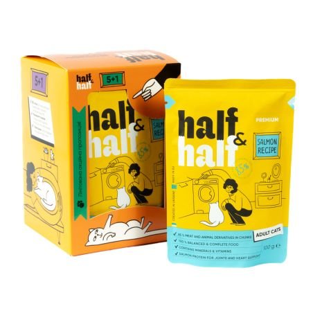 Набір паучів HalfHalf д/дорослих котів лосось/желе 5+1