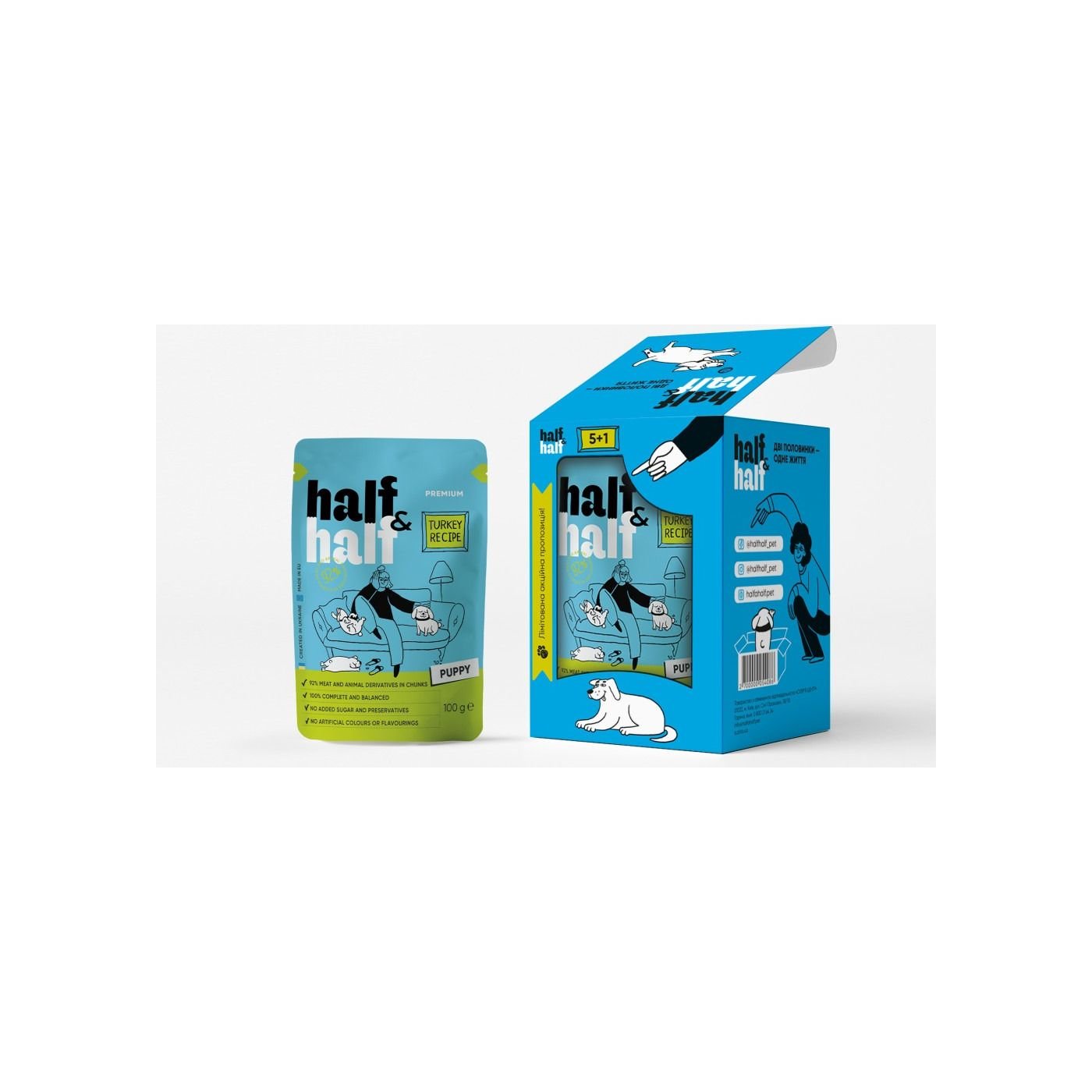 Набір вологих кормів Half and Half “5+1” для цуценят, шматочки з індичкою в соусі, паучі, 6 шт*100 г