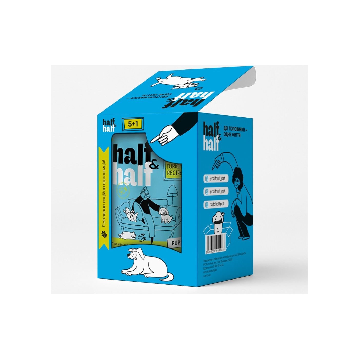 Набір вологих кормів Half&Half “5+1” для цуценят, шматочки з індичкою в соусі, паучі, 6 шт*100 г
