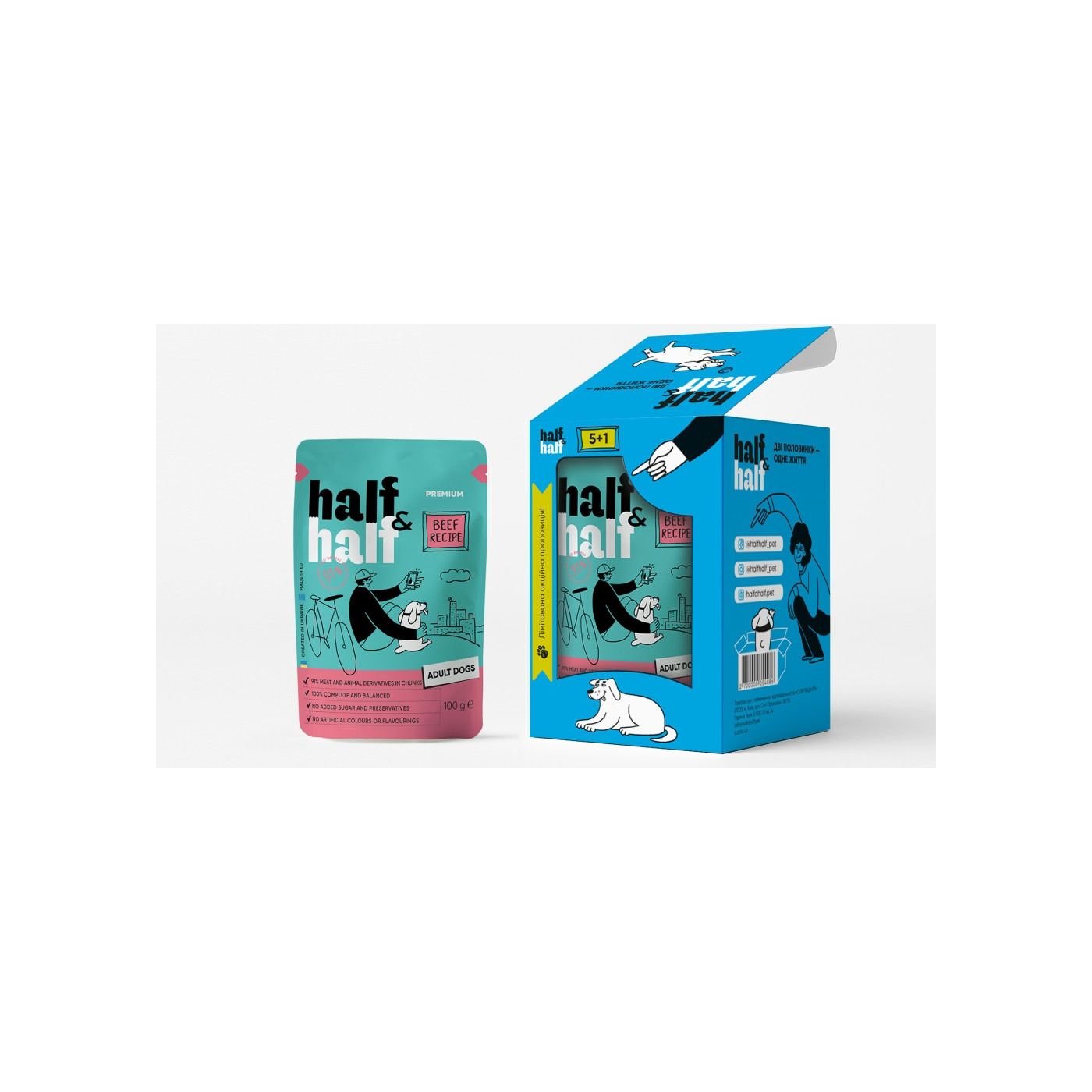 Набір вологих кормів Half and Half “5+1” для дорослих собак, шматочки з яловичиною в соусі, паучі, 6 шт*100 г
