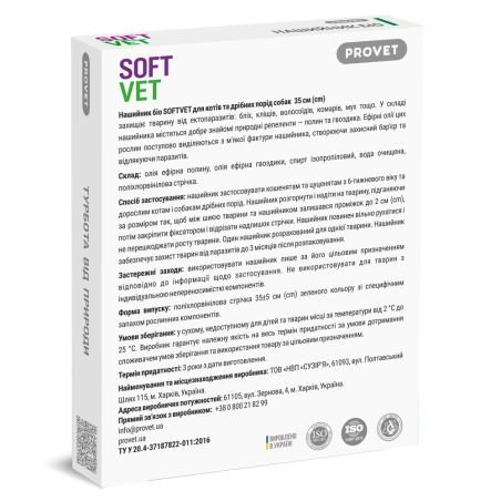 Нашийник Provet SOFTVET БІО для котів та собак дрібних порід репелентний 35 см