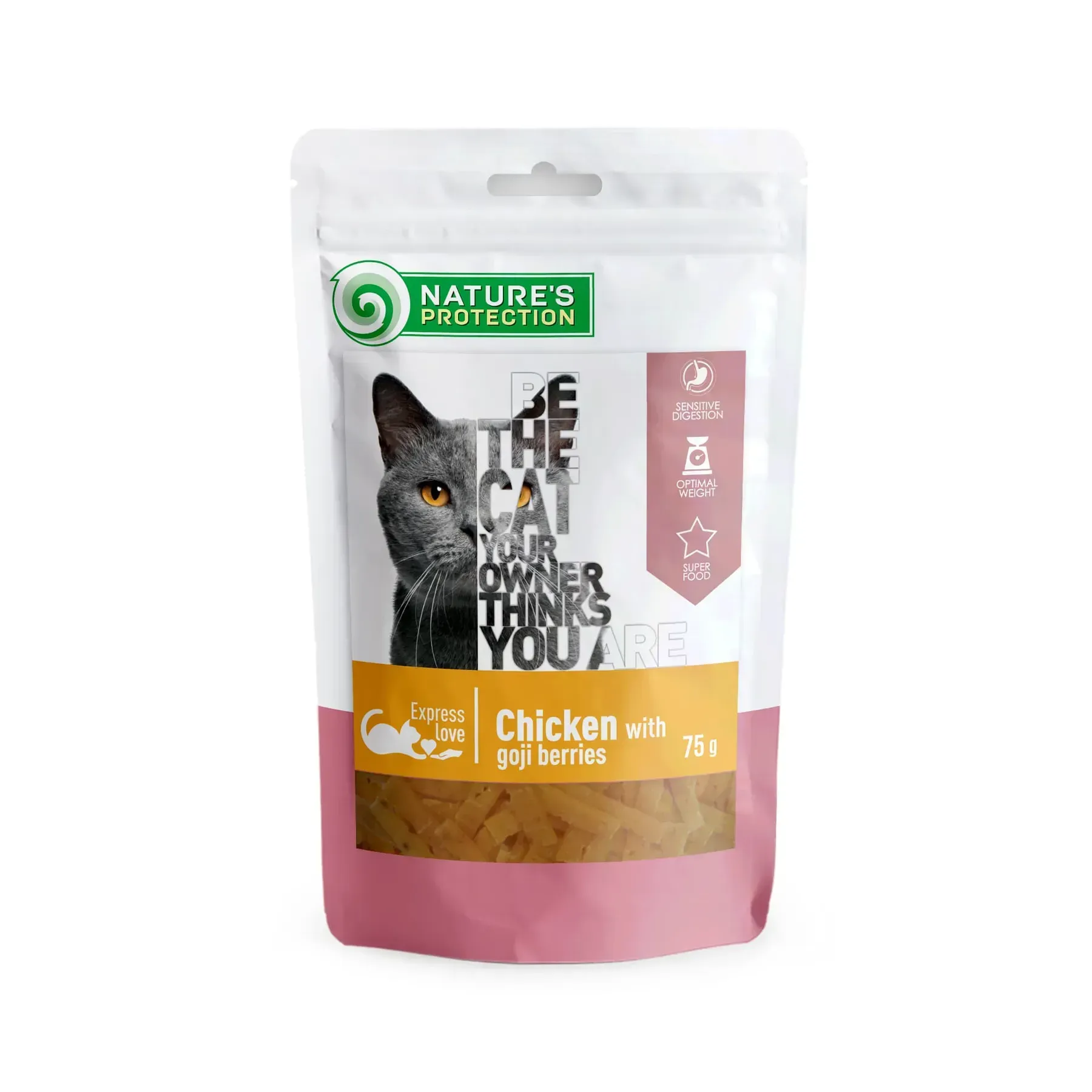 Nature’s Protection Chicken With Goji Berries – високоякісні, натуральні ласощі, призначені для задоволення потреб дорослих котів. Особливо підходить для котів з чутливою травною системою.