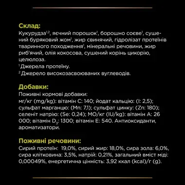 - Висока енергетична цінність для підтримки енергетичного балансу.