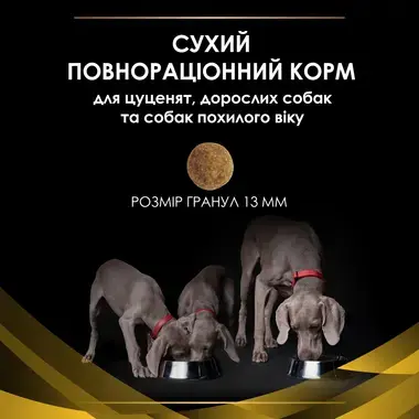 Керуйтеся рекомендаціями щодо годівлі дорослих собак. Ці норми носять рекомендований характер. Для підтримки оптимального стану тіла тварини адаптуйте кількість корму залежно від рівня активності вашого собаки, його фізичного стану та індивідуальних потреб. Для підтримки вашого улюбленця у здоровому стані регулярно звертайтеся за консультацією до ветеринарних лікарів. Для зниження маси тіла собаки давайте вказану кількість корму, щоб розпочати процес схуднення. Після досягнення оптимальної маси тіла перейдіть до рекомендацій для підтримання маси тіла дорослих собак. Свіжа чиста питна вода повинна бути доступною тварині у будь-який час. Для собак масою тіла більше 70 кг/kg: на кожні додаткові 5 кг/kg маси тіла додавайте 30 г/g корму для підтримання маси тіла дорослих собак, 20 г/g корму для зниження маси тіла дорослих собак або 25 г/g корму для годівлі собак похилого віку.