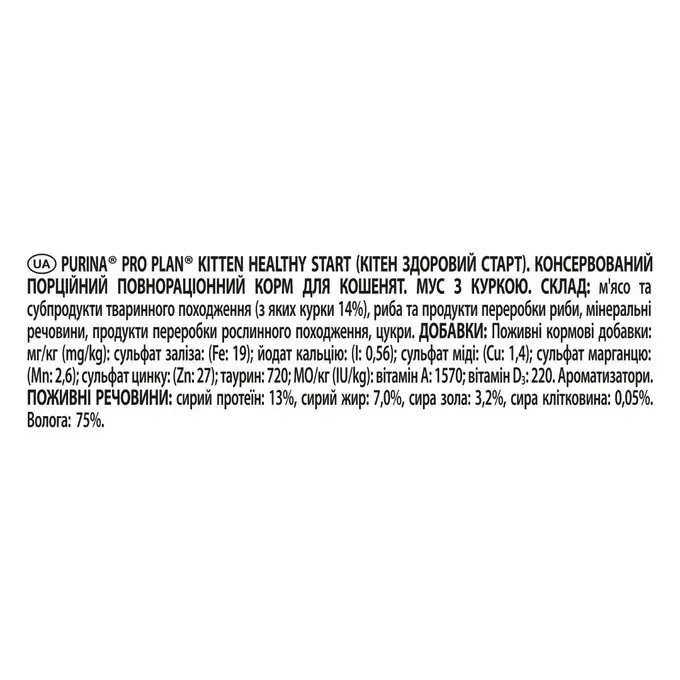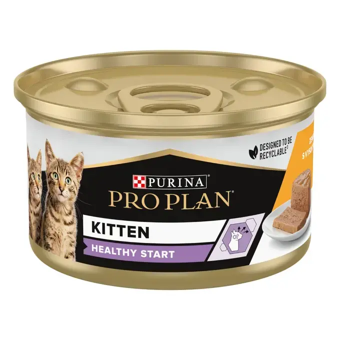 PRO PLAN® KITTEN HEALTHY START (КІТЕН ЗДОРОВИЙ СТАРТ). Консервований порційний повнораціонний корм для кошенят. Мус з куркою.