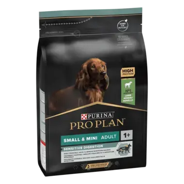 PRO PLAN®. Сухий повнораціонний корм для дорослих собак малих порід з чутливою системою травлення. З ягням.