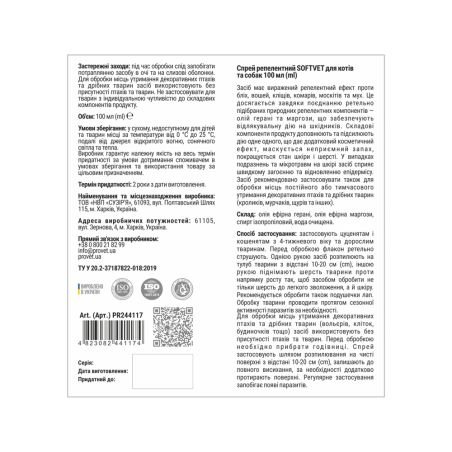 Спрей Provet SOFTVET репелентний для котів та собак 100 мл, арт PR244117