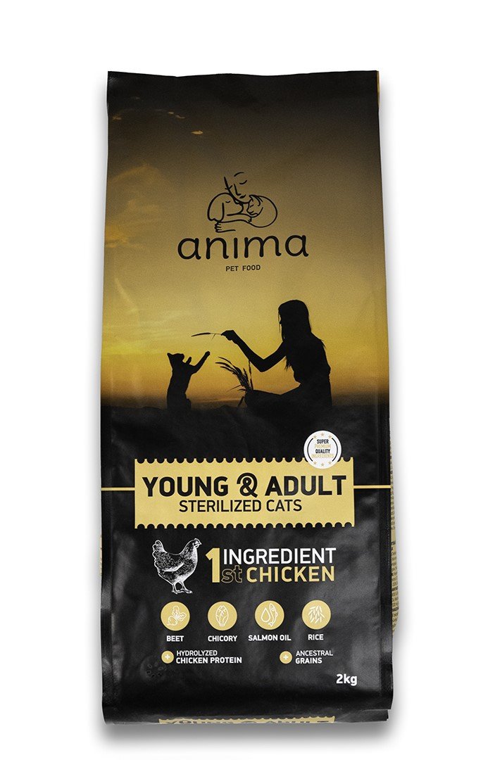 Сухий корм для молодих та дорослих стерилізованих кішок Anima з куркою