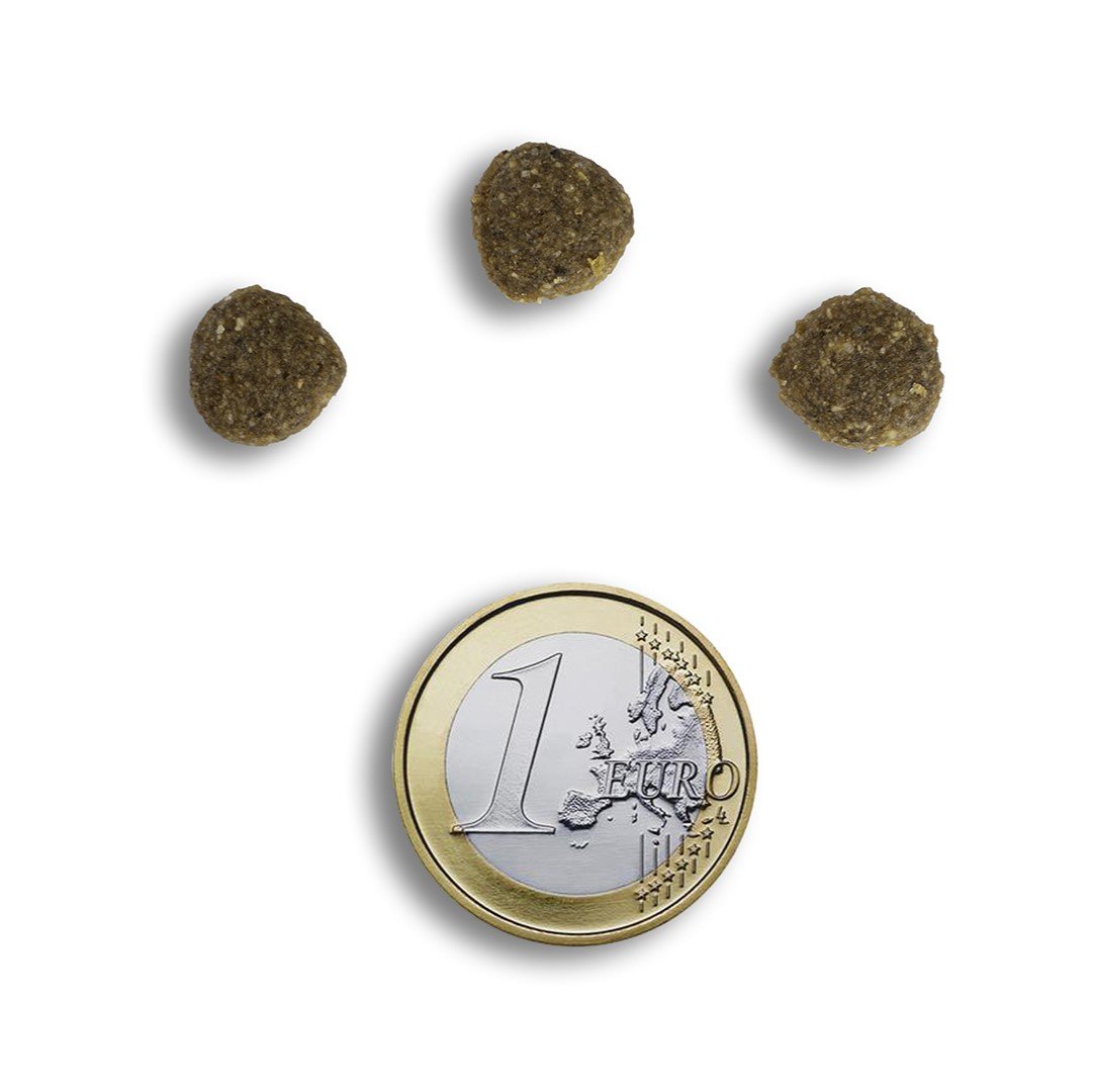СКЛАД: Дегідратований тваринний білок (курка 30%), рис, кукурудза, тверді сорти пшениці, тваринний жир 3% (лососева олія 1%), буряковий жом, жом цикорію, гідролізат курячого білка, мінерали, фруктоолігосахариди.