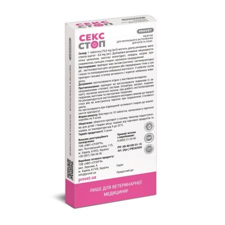 Таблетки Provet СЕКССТОП для котів та собак 10 табл (контрацептив), арт PR242959_1блист.(10таб)