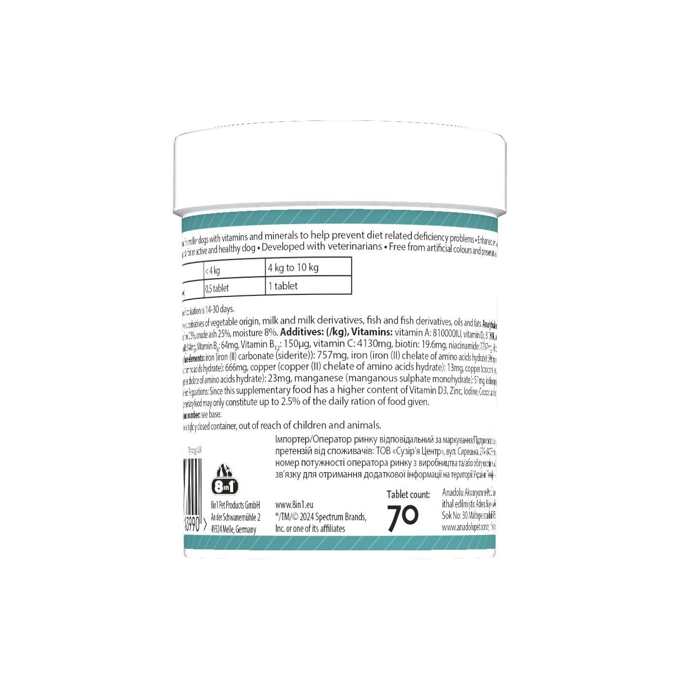 Вітаміни 8in1 Excel Multi Vitamin Small Breed для собак дрібних порід мультивітамін 70 шт