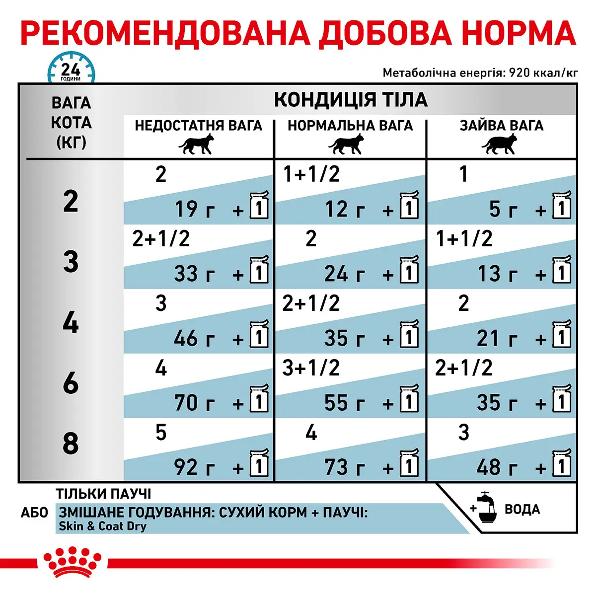 Перед початком споживання слід проконсультуватися з ветеринарним лікарем. Годування кормом SKIN&COAT до 2 місяців.