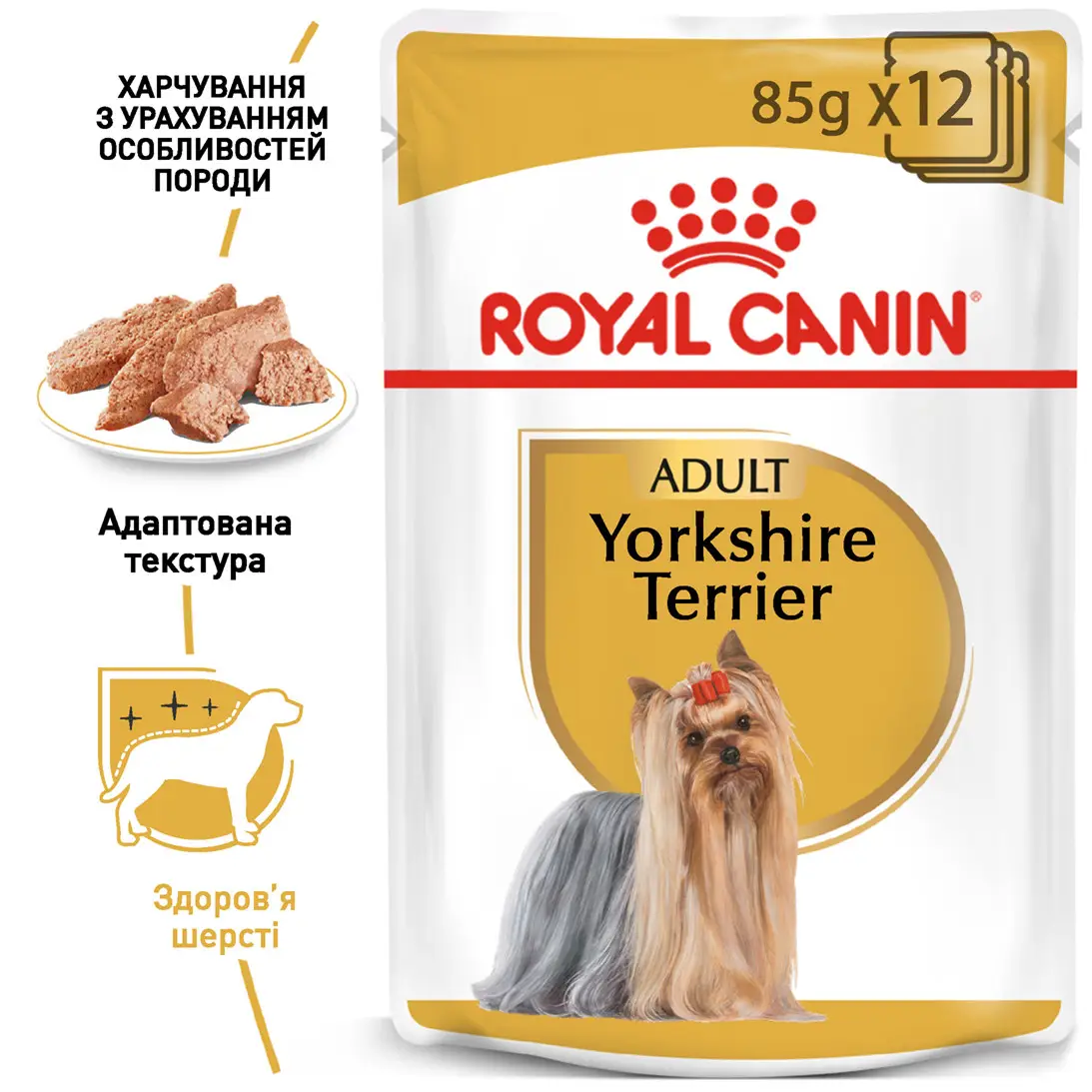 Сприяє підтриманню здоров’я шкіри та довгої шерсті йоркширського тер’єра завдяки ексклюзивному комплексу нутрієнтів.